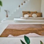 The design evokes the sea, earth, and moss, establishing a close link with nature. The colours blend harmoniously into each other, creating a spontaneous and captivating design.