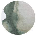 The design evokes the sea, earth, and moss, establishing a close link with nature. The colours blend harmoniously into each other, creating a spontaneous and captivating design.